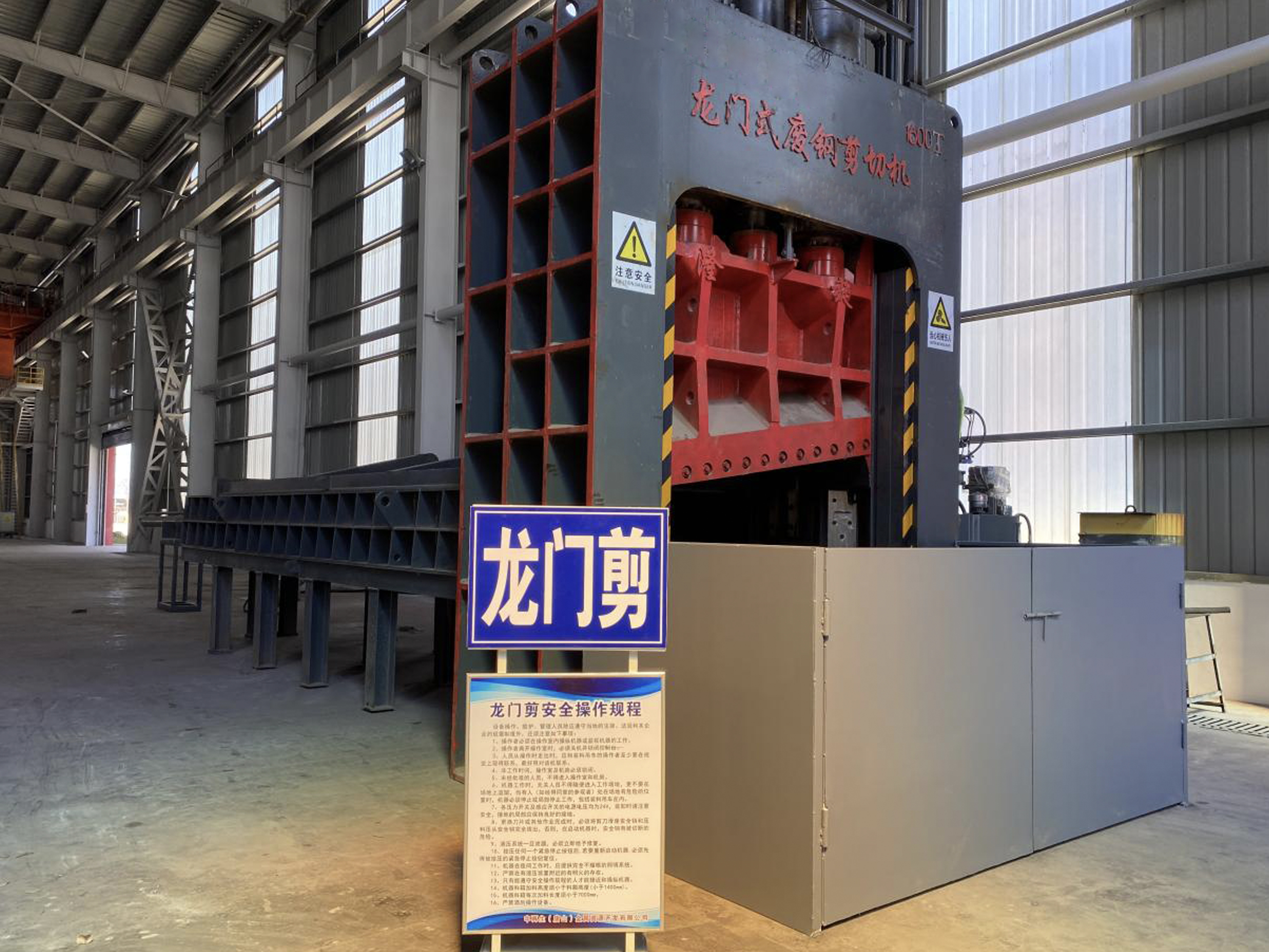 拥有11000马力和6000马力纽维尔废钢破碎线各一条,同时配置龙门式金属剪切机、抓钢机、装载机、行吊、放射性检测仪、电子汽车衡、非钢铁类夹杂物分类设备等。通过采用先进的破碎、剪切、分选加工系统,保证产品品质,实现再生资源从回收—加工—分选—再生利用的循环经济,打造再生资源循环利用的绿色生态产业链。